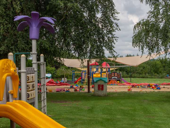 Dzieci mają do dyspozycji osobną sale zabaw wyposażoną w akcesoria i zabawki posiadające odpowiednie certyfikaty. Sala stanowi doskonałą alternatywę na świetną zabawę w deszczowe dni. Na terenie przedszkola znajdują się dwa duże płace zabaw i ogród.Wszystkie sprzęty do zabawy posiadają odpowiednie certyfikaty, są bezpieczne a przede wszystkim nowoczesne i atrakcyjne.Na terenie placu nie zabrakło również miejsca na boisko do gry w piłkę nożną.